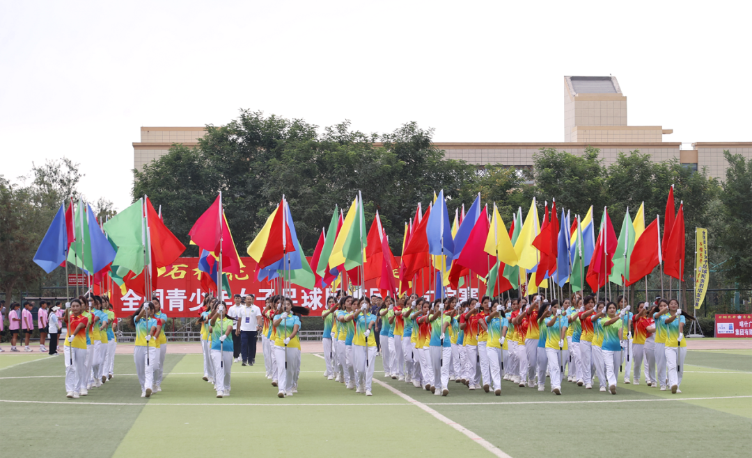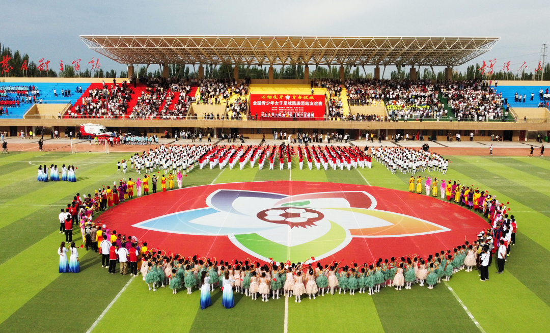 “石榴花开 青春绽放”全国青少年女子足球民族团结友谊赛开幕式现场。杜晓斌 摄